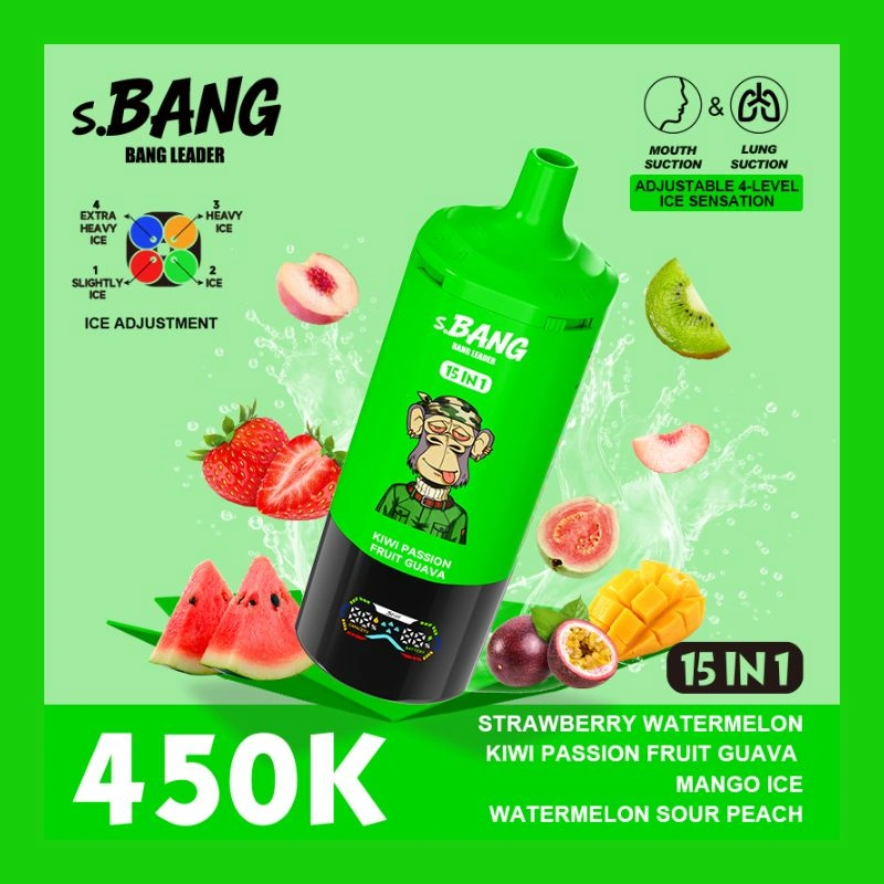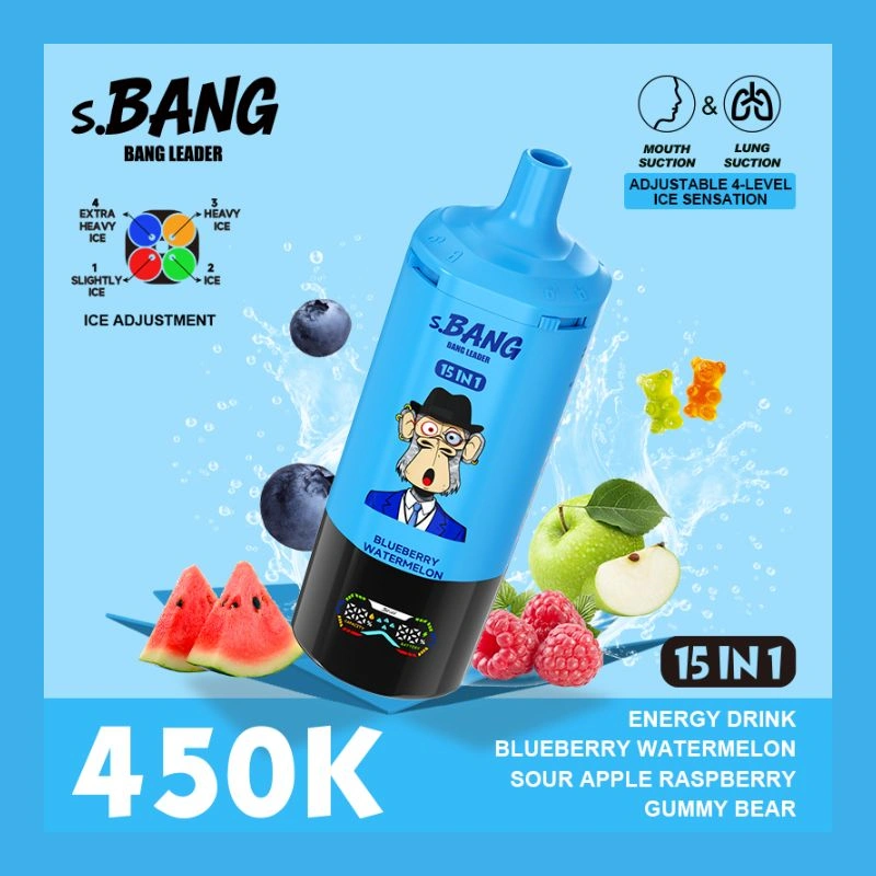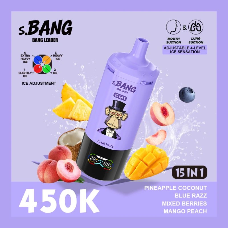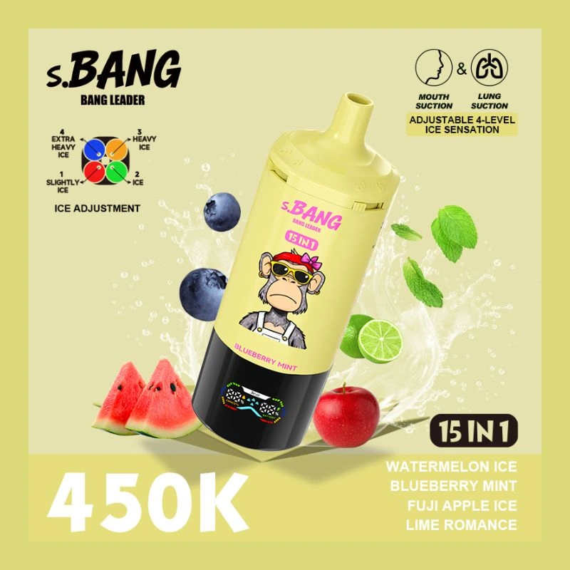 Tas Bang Leader 450000 dominuoja 2026 m. vienkartinis garintuvas rinkoje. Jis pasiekia rekordinius 450 000 pūtimų maksimaliai ilgaamžiškumui. Šis didelės talpos shisha stiliaus vape tinka profesionaliems elektroninių cigarečių didmeninė prekyba pirkėjams. Jame yra pasaulinis pirmasis 15-in-1 skonių keitimo sistema. Jūs mėgaujatės penkiolika skirtingų aukščiausios kokybės e-skysčio skonių viename įrenginyje. Jis suteikia visišką įvairovę kiekvienam vaping'o entuziastui.
